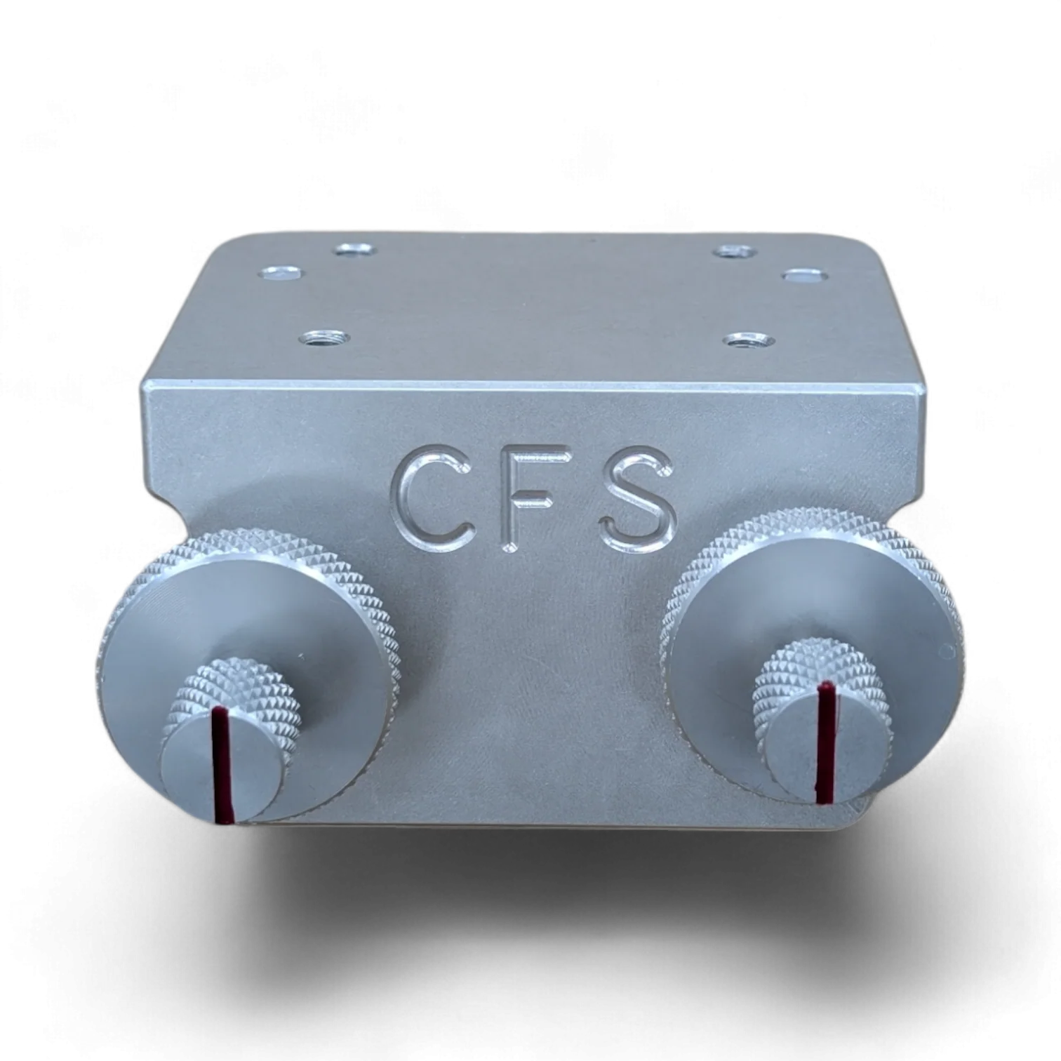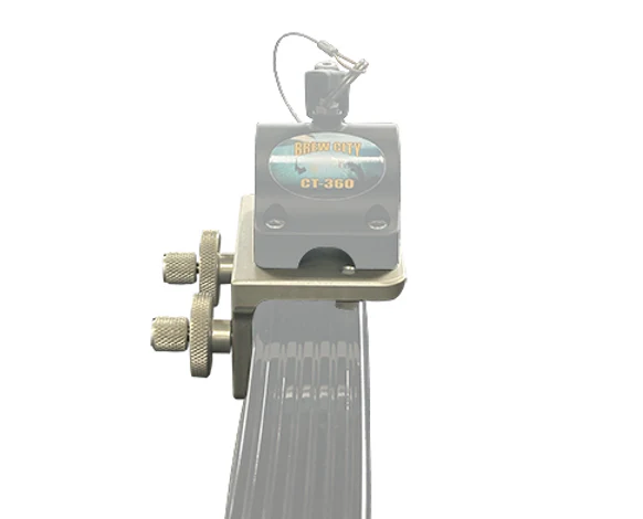 The 90° Lund mount is machined from a solid piece of aluminum bar and is pressed to create the angled bend. The slotted keys are made from stainless steel and are attached to all solid aluminum components which complete the round knobs. You will know when your unit is locked into place when the red line gauge is in the vertical position. Also, provided with this unit are two synthetic levelers at the end of the unit to give the mount added support and to protect the gunnel from unnecessary scratches.