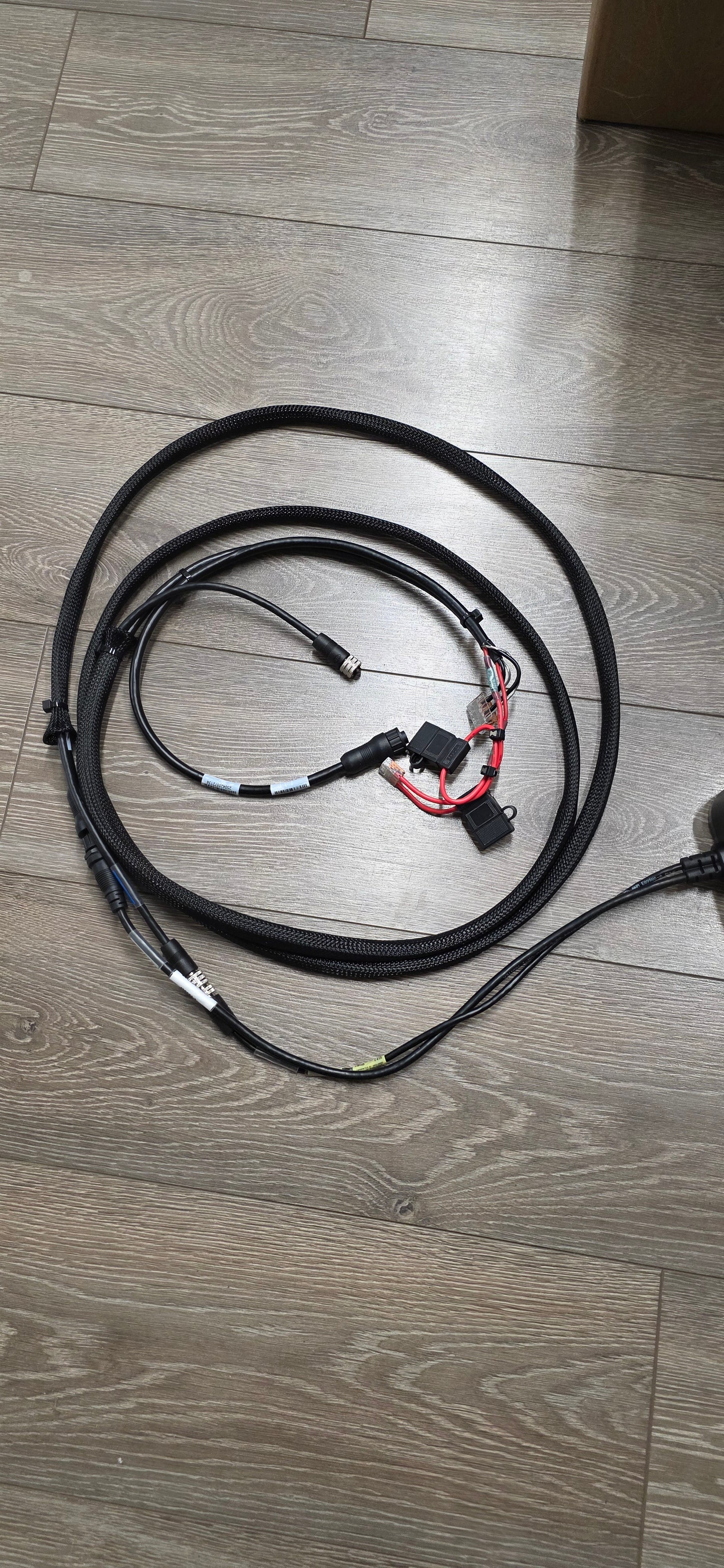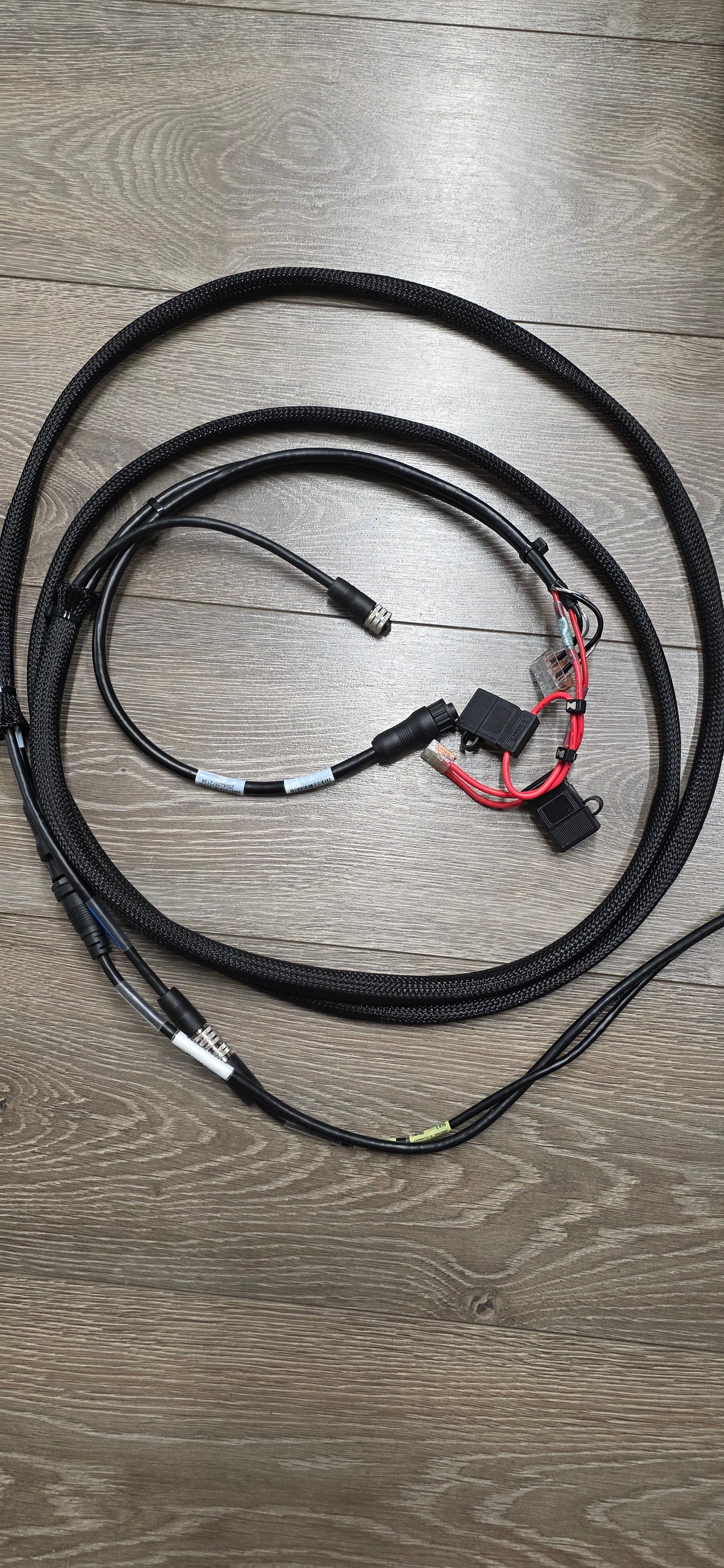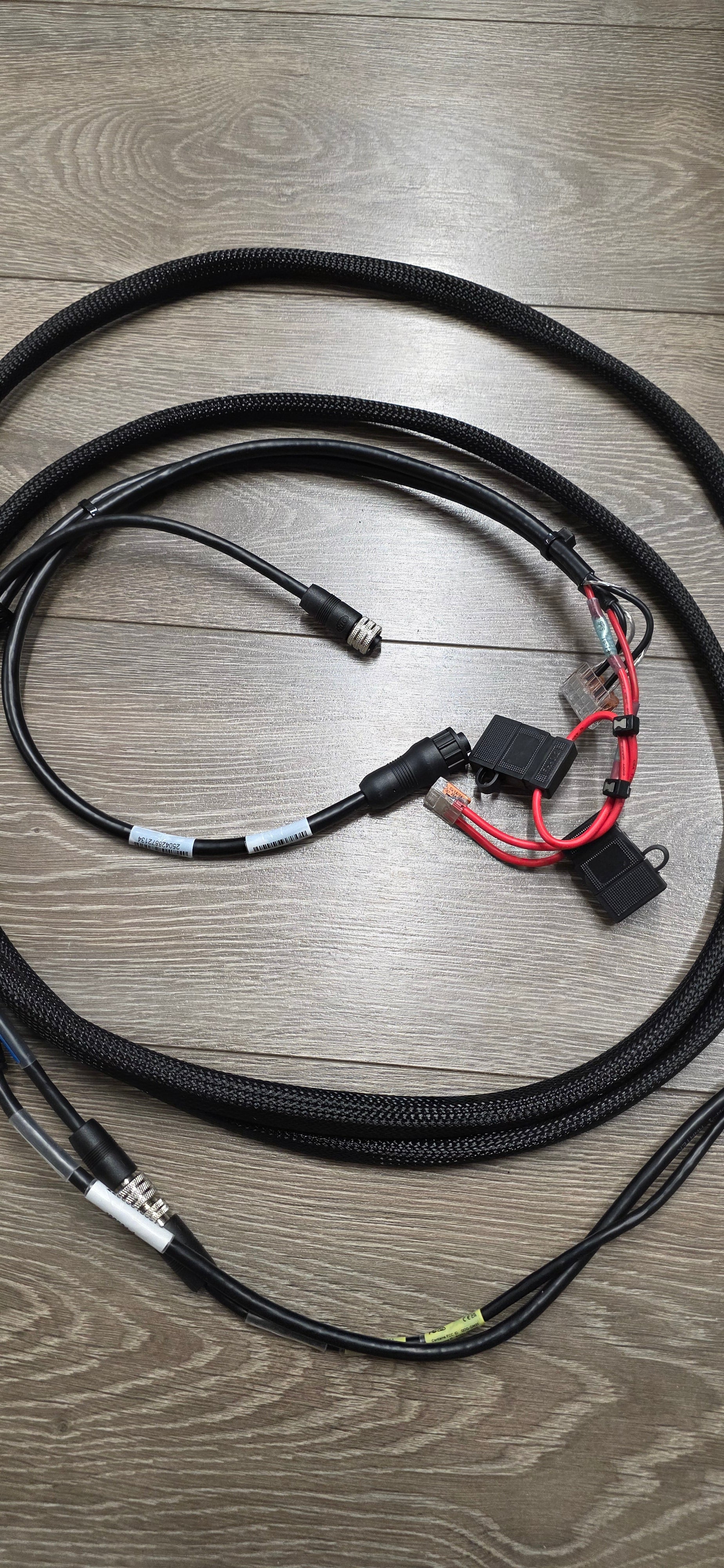 This is one short PC13 with a Fuse holder for the Xplore or Apex, you must match the fuse to your screen or let us know which model it is, and we can include it.  The other power cord is a long PC13 and 10' Ethernet Combo that seems to be the perfect length for an ice bundle, we then cover that in flexible sleeving like used when rigging boats.